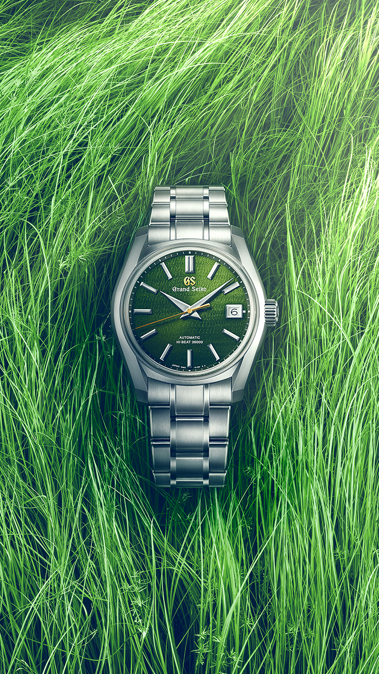 その工房近くの青々とした草原を通り抜ける穏やかな風を想起させるような、鮮やかなグリーン文字盤が特徴です。