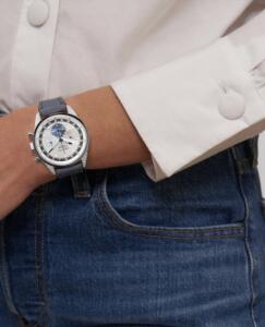 ダイヤモンドがセットされたラグを備えており、ホワイトマザー・オブ・パールの文字盤に3つの異なるカラーのパールを使用したトリコロールのレジスターが組み合わされています。