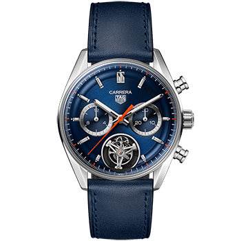 鮮やかな色合いで際立つブルーのサンレイ加工サテン仕上げダイヤルを引き立てる、ロジウムプレートの針とインデックス。わずかに曲線を描くフランジが、タグ・ホイヤー カレラのタイムレスなデザインに洗練されたタッチを添えています。ケースバックに刻印された象徴的な“ビクトリーリース”は、タグ・ホイヤーが培ってきたモータースポーツのレガシーを讃えるとともに、カレラとともに勝利を祝った歴代のレーサーたちにオマージュを捧げています。