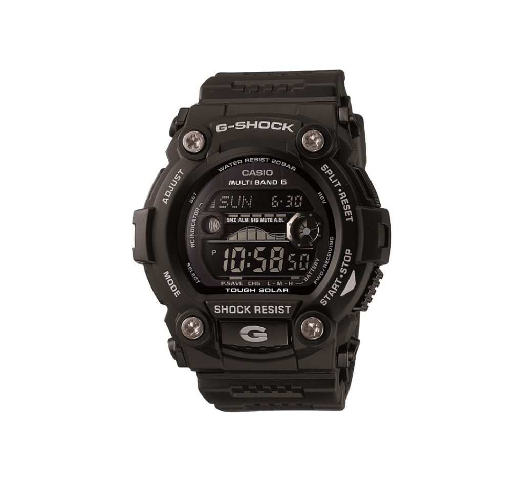 タイドグラフ・ムーンデータ計測機能を搭載しながら、世界6局標準電波の受信を実現させました。防護服などの着用時にグローブをはめたままでも確実な操作を可能にする大型ボタンを搭載し、高い視認性を確保する大型液晶を採用。ケース裏面にはスリット入りカバーを取り入れ、裏面からの衝撃保護と同時に通気性を高め快適な装着感も実現させています。カラーリングはモノトーンを基調にデザイン。グレーIPを施した削り出しの大型ステンレスビスをベゼルに配し、タフネス感を強調しています